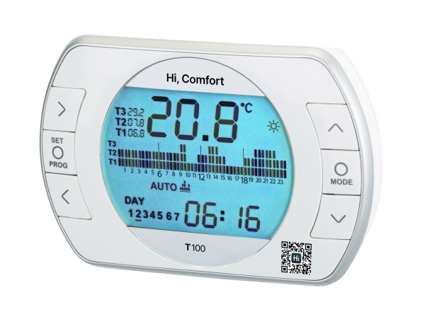 Hi, Comfort T100 est la solution simple et intelligente pour gérer le confort de la pièce à la fois par le contrôle mural traditionnel et grâce à la nouvelle application Hi, Comfort, téléchargeable gratuitement pour les systèmes Android et iOS, qui vous permet de gérer le climat de votre maison ou contrôler facilement la chaudière, permettant une expérience utilisateur fantastique pour l'utilisateur final.