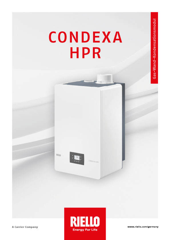 CONDEXA HPR IST DIE NEUE MODULARE RIELLO-LÖSUNG MIT WANDINSTALLATION, IDEAL FÜR DEN ERSATZ ALTER GENERATOREN IN KLEINEN TECHNIKRÄUMEN.