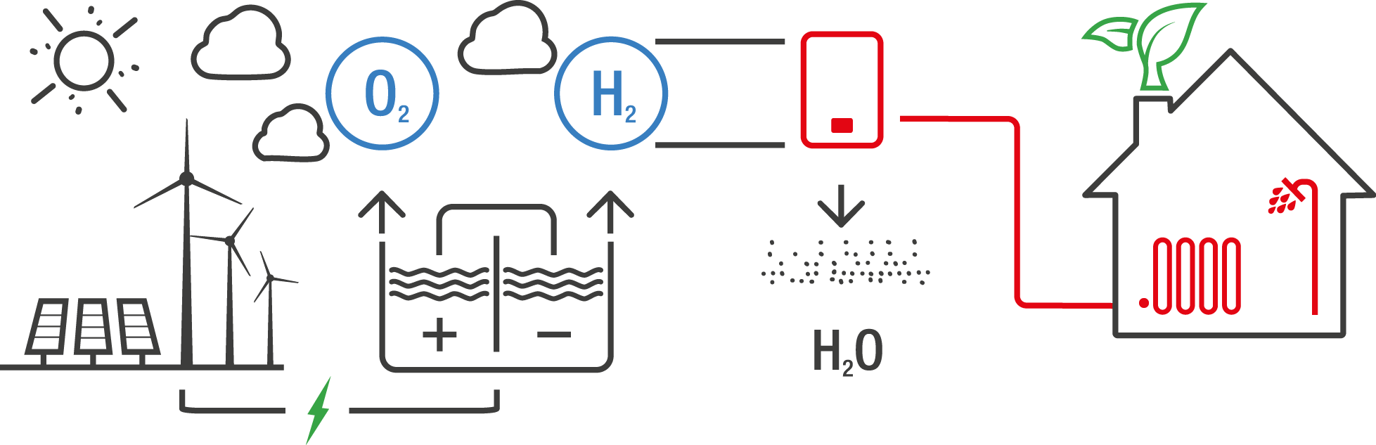 Hydrogen is a safe and clean gas that, blended with natural gas up to a maximum ratio of 20 to 80 percent, makes it possible to generate heat and domestic hot water, with lower CO2 emissions than other fuels*.