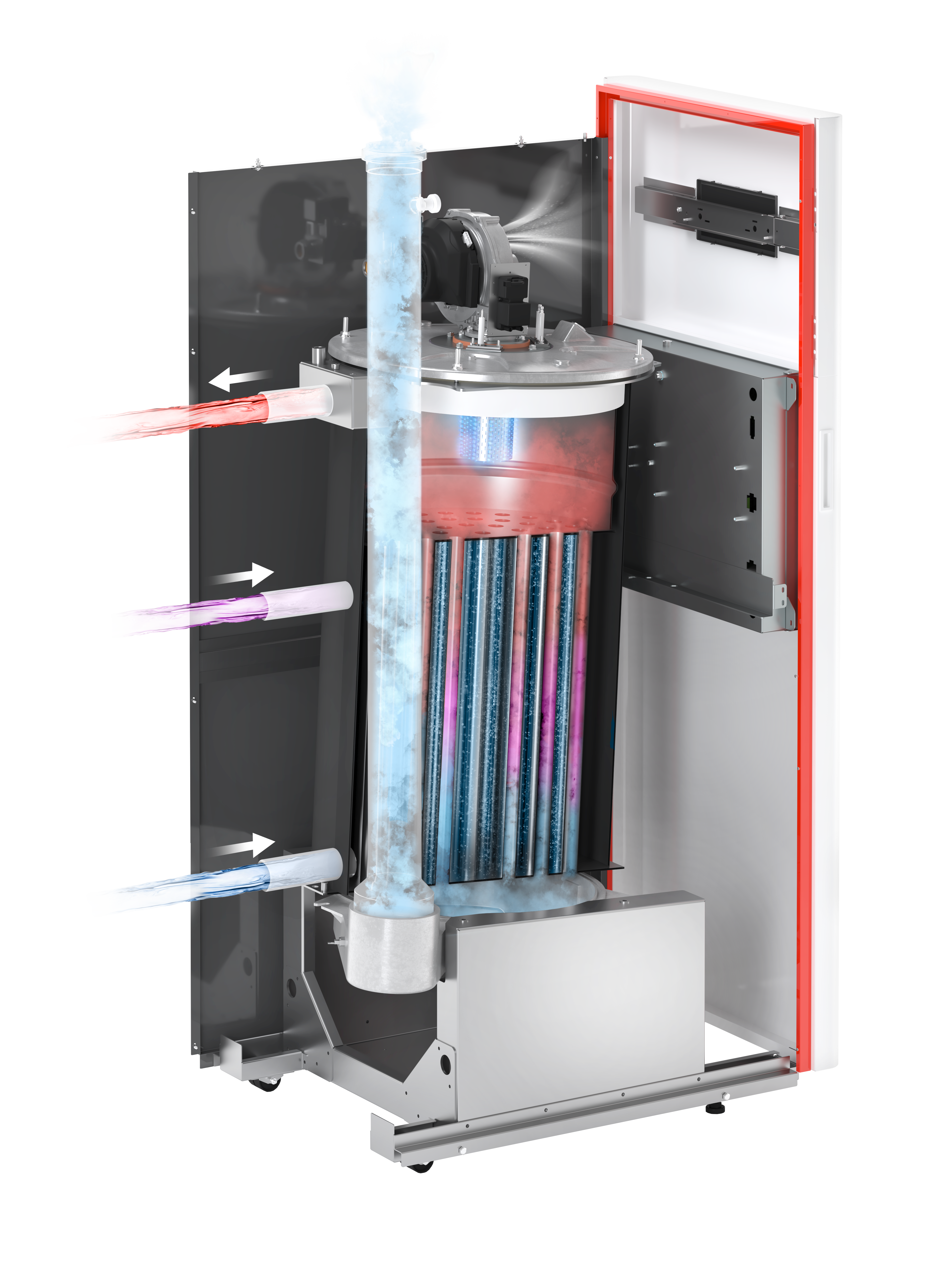 El intercambiador está fabricado en acero inoxidable de alta calidad, garantizando durabilidad e inalterabilidad en el tiempo. El exclusivo intercambiador de acero inoxidable, combinado con la tecnología de condensación, permite recuperar una parte considerable de la energía utilizada.
